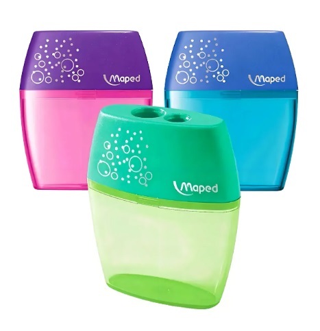 Sacapuntas con depósito plástico transparente. Colores vivos para llenar de alegría la cartuchera. Ideal para el colegio, la oficina o el hogar. Buen agarre, fácil de usar. Depósito de alta capacidad.